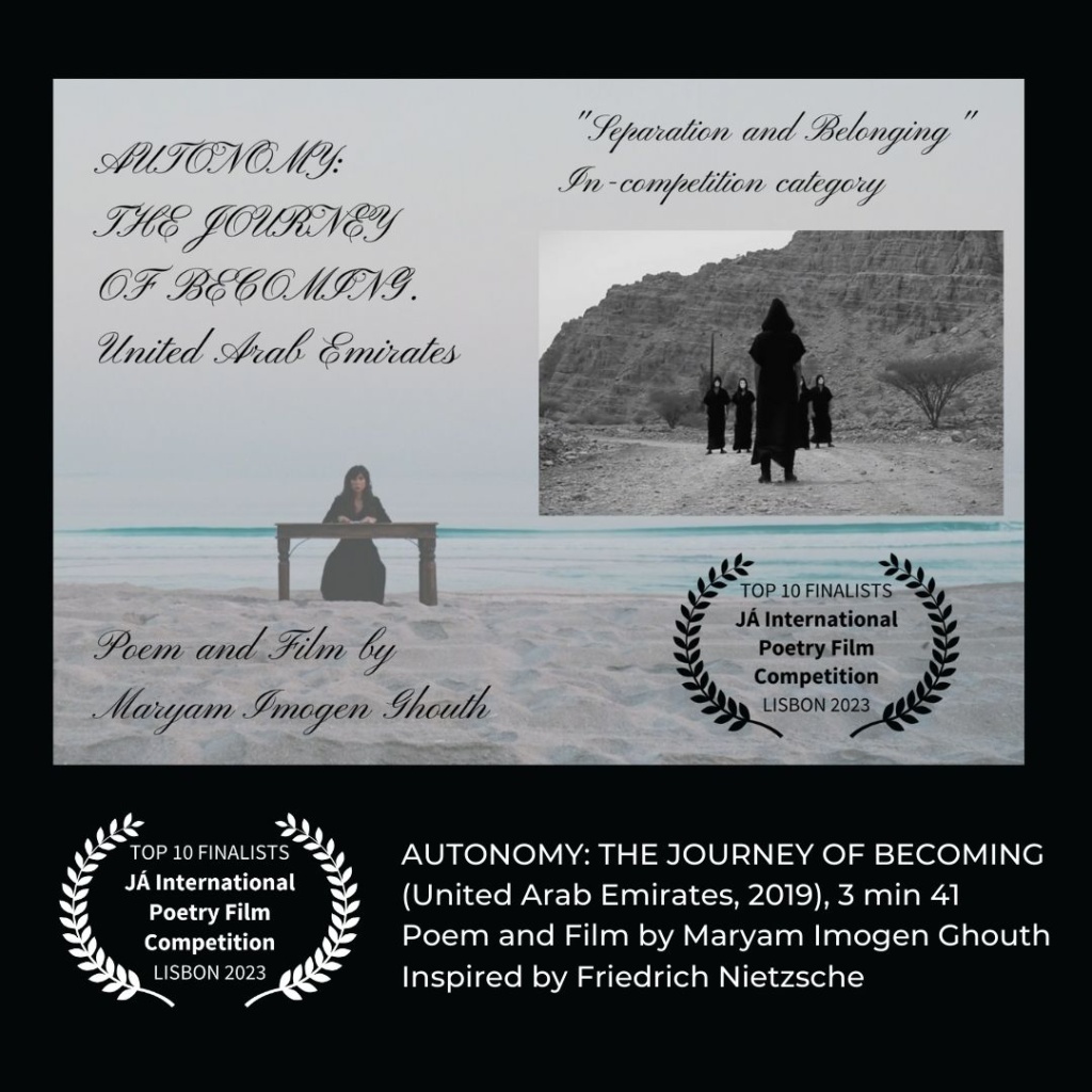 The Journey of Becoming is a series of three philosophical poetry films describing the fears, struggles and rewards of stepping away from the trodden path to follow one’s higher calling. Part one of the series, Autonomy, laments the societal rejection we may face in the pursuit of our dreams. Maryam Imogen Ghouth lives in the leafy suburbs of Dubai, where she publishes poetry as written pieces, recorded tracks, and poetry films. She often works in collaboration with up-and-coming musicians and directors to fuse their art with her voice and words. Her recorded poems have been featured in short films such as "Under the Sun," which premiered worldwide, and her written poems have appeared in several international literary publications, including Last Leaves, The Poet Anthology, and inScribe.